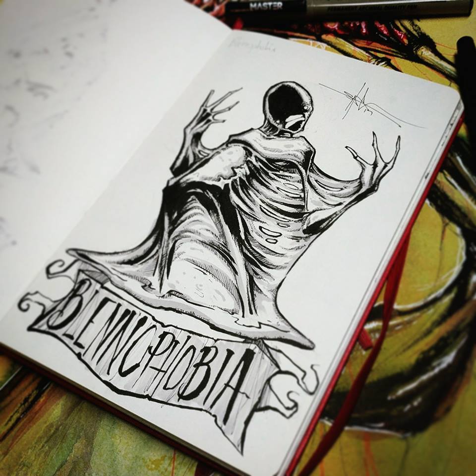 Otro año más de Inktober en el que el el artista Shawn Coss nos vuelve a deleitar con unas impactantes ilustraciones relacionadas con el mundo de la psicología. Este genial artista americano ha elegido para esta ocasión representar el mundo de las fobias.